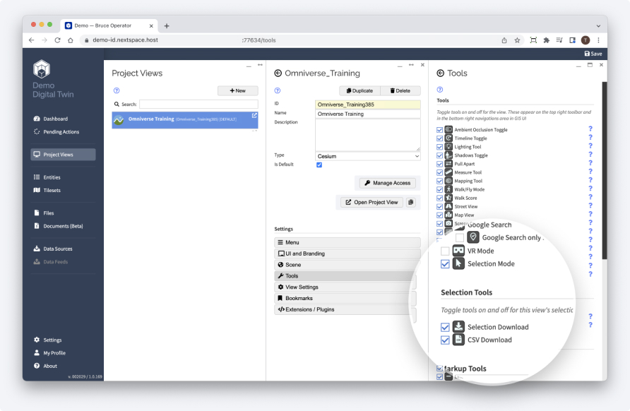 This will launch the Nextspace Navigator in a new tab where you’ll visualize your model using the entity menu, and create a bookmark so your data is ready for export.