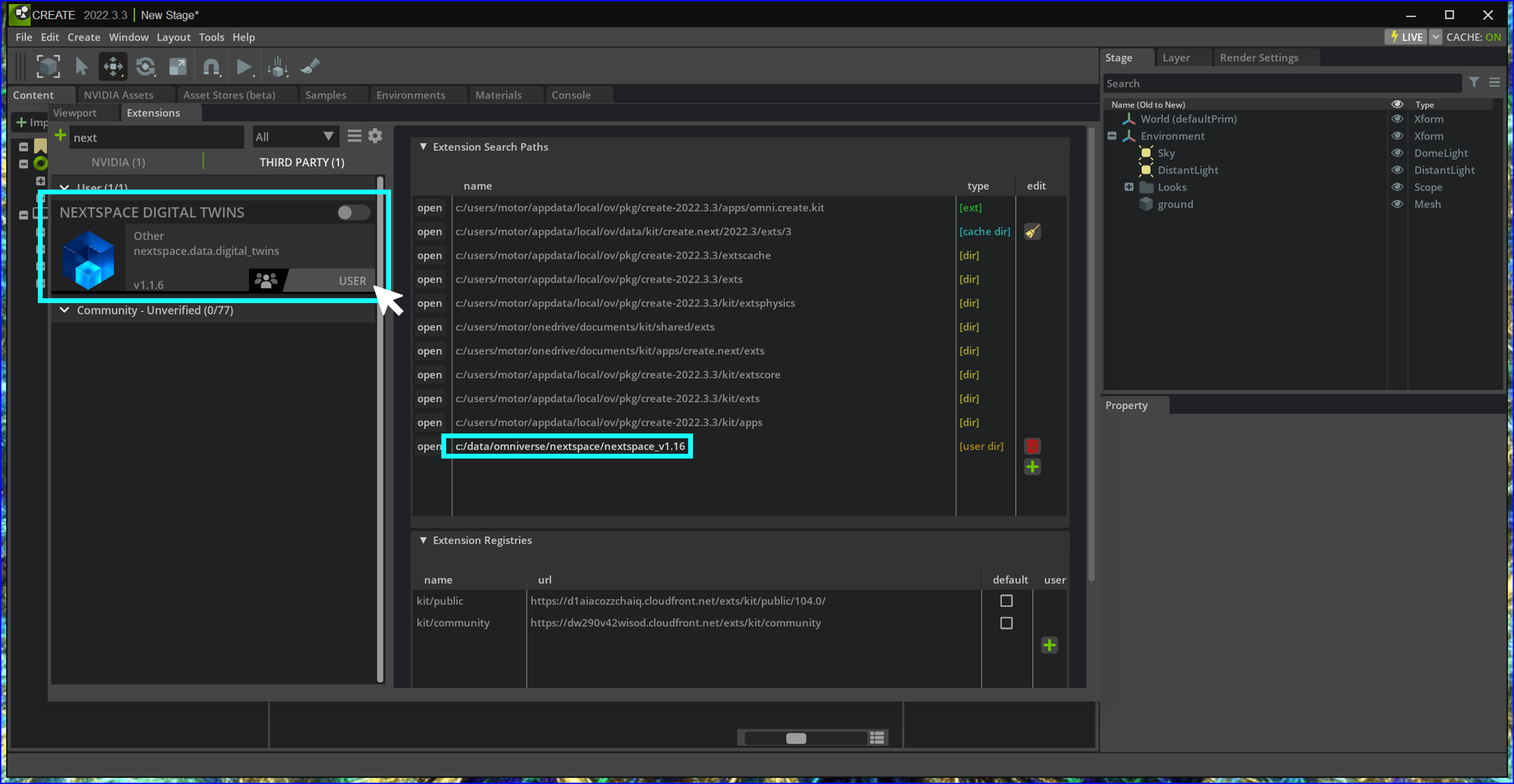 Finally, you'll need to download the Nextspace Omniverse Extension and configure it from inside the Create app. We’ll walk you through it in the steps below.